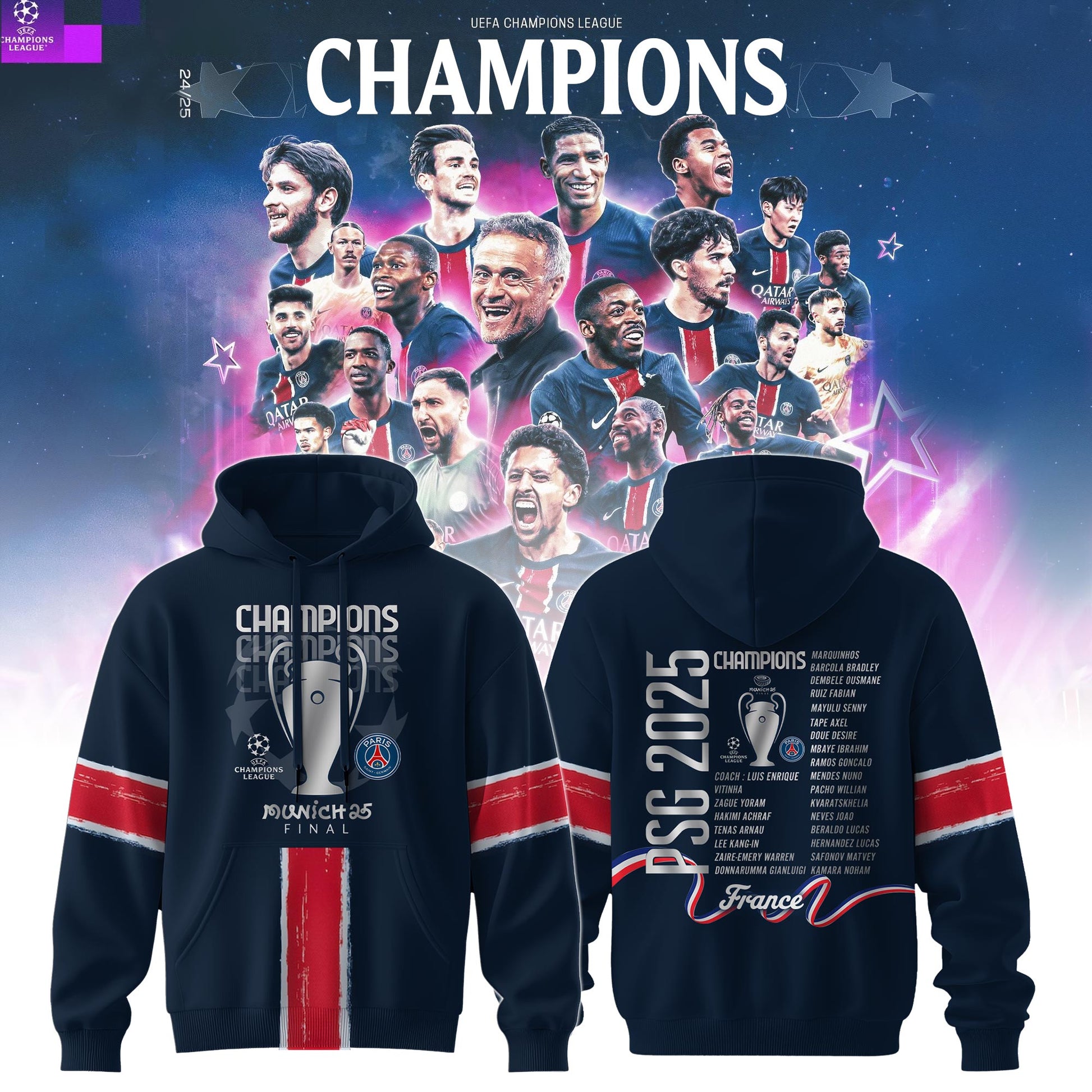 _Paris Saint-Germain F.C Champions League Winner 2025 Hoodie #1